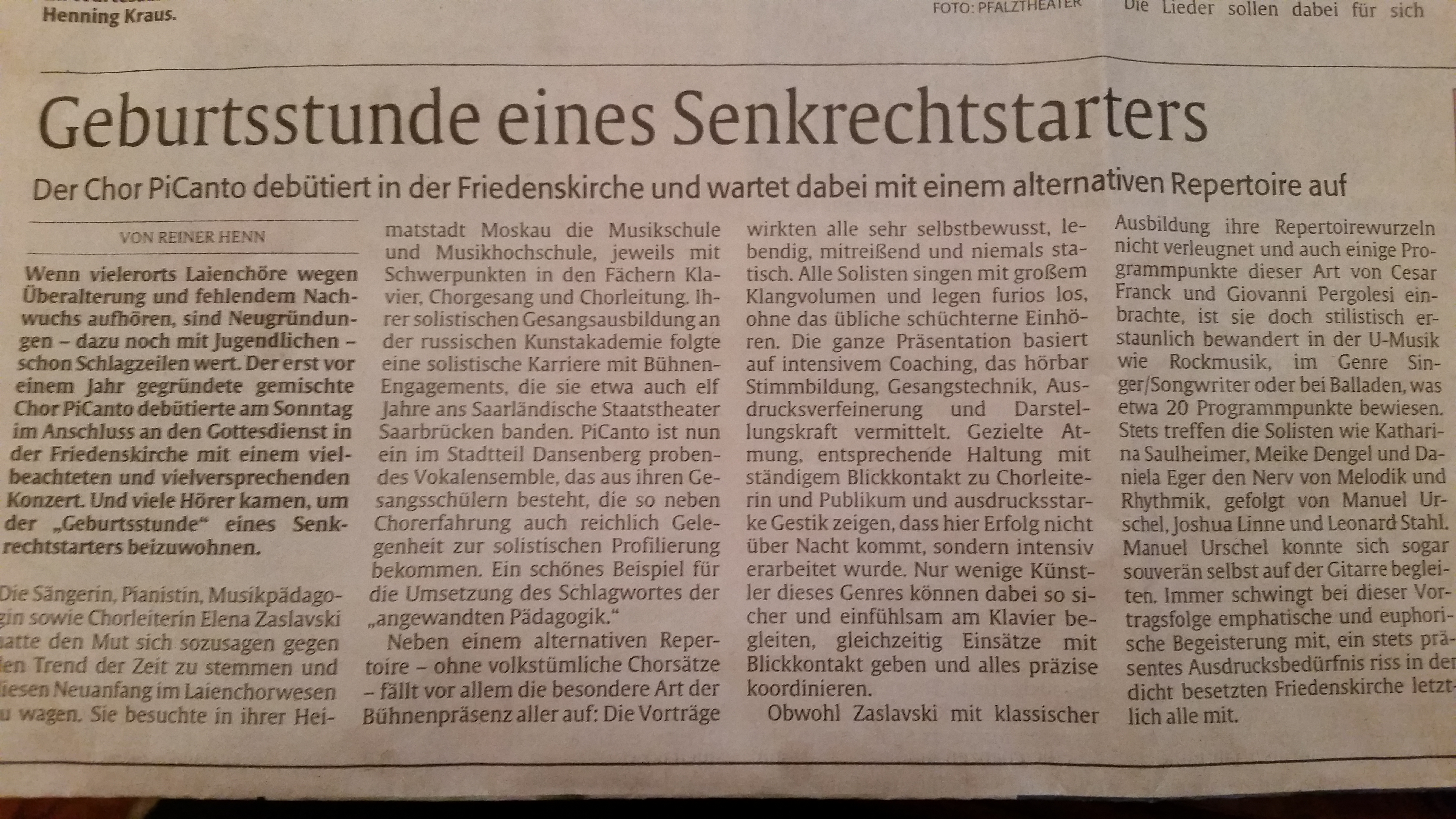 „…neben alternativen Repertoire..fällt vor allem die besondere Art der Bühnenpräsenz auf: Die Vorträge wirken alle sehr selbstbewusst, lebendig,mitreißend und niemals statisch.Alle Solisten singen mit großem Klangvolumen und legen furios los,ohne das übliche schüchterne Einhören“