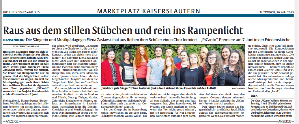 PiCanto ist eine Gesangsgruppe, die aus meinen Gesangsschüler besteht, viele von ihnen sind in unterschiedlichen Bands aktiv.